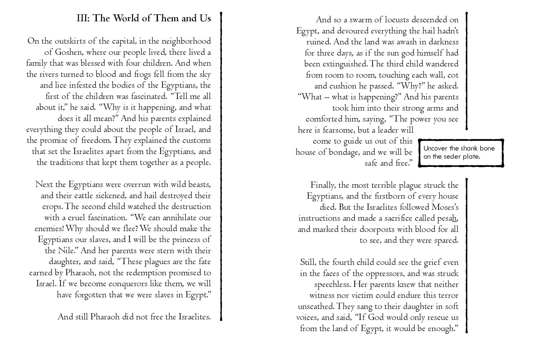 Sample pages from The Storyteller's Haggadah, a re-imagining of a central text featuring traditional and contemporary values.