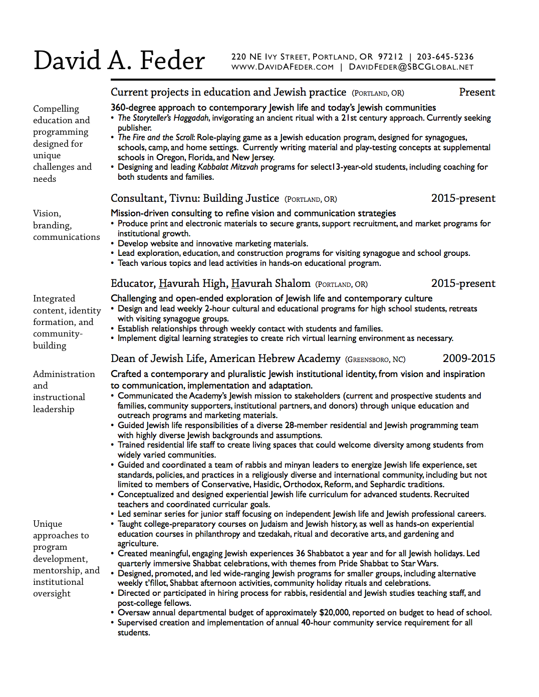 David Feder is an experienced educator, programmer, and administrator, with a background in Jewish schools, collegiate settings, and community work. He has published writing on both the history and future of the American and Israeli Jewish communities. He specializes in community-building, informal education, and traditional and alternative Jewish practice.